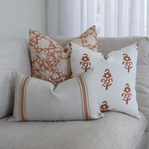 Looking for a simple way to spruce up your home? Introducing our rectangular Isla Linen Rust Floral Cushion Cover. Style your space effortlessly by pairing her with our Anna Terracotta Floral or Ivy Terracotta Stripe cushions.