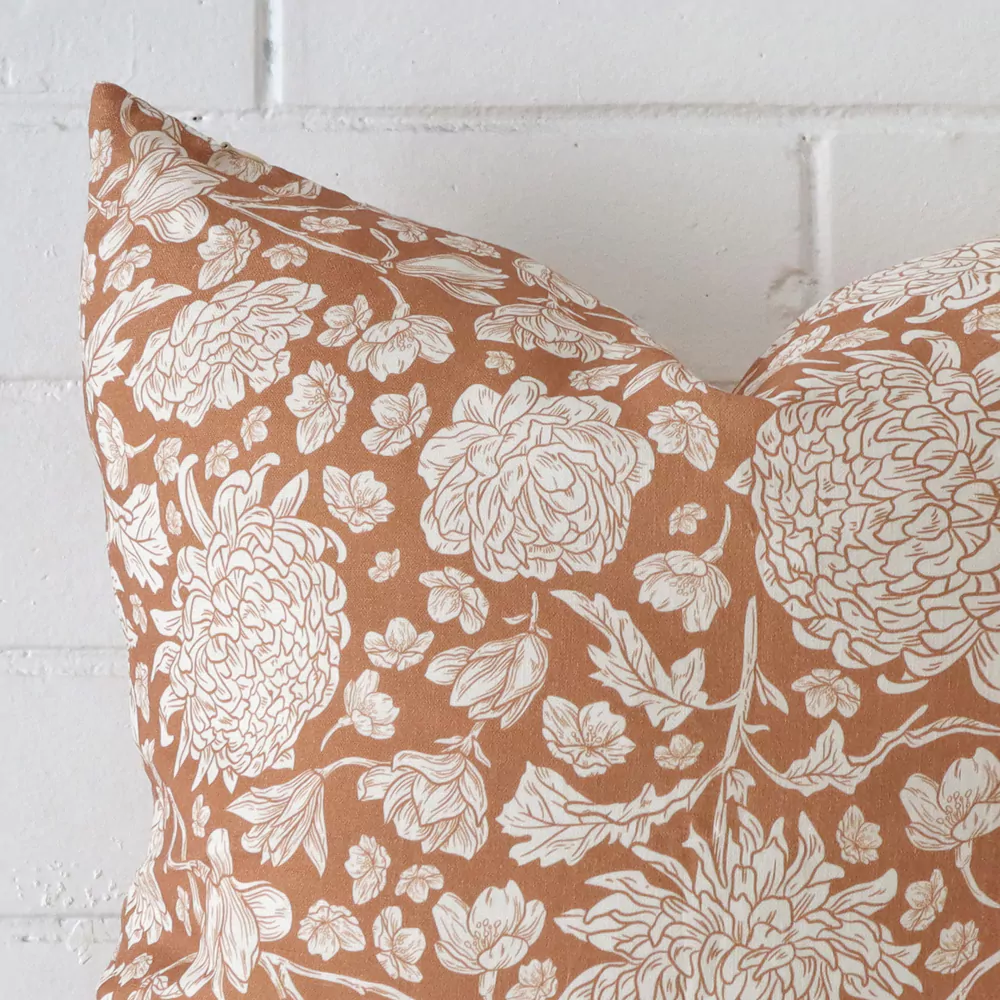 Anna Linen Terracotta Floral Cushion Cover – Rectangle