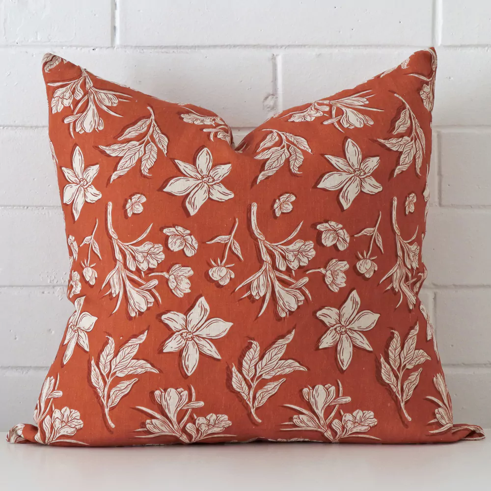 Audrey Linen Rust Floral Cushion Cover – Large