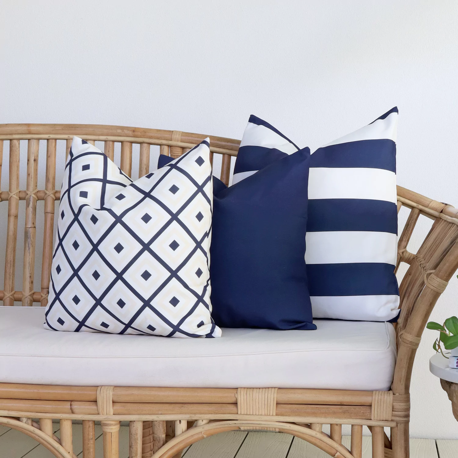 Bring timeless style to your outdoor setting with the Byron Navy Outdoor Cushion Set. The elegant geometric pattern, deep navy, and classic stripes offer a sophisticated look. Crafted with water and UV-resistant fabric, this set is ideal for enhancing sunlit outdoor spaces.