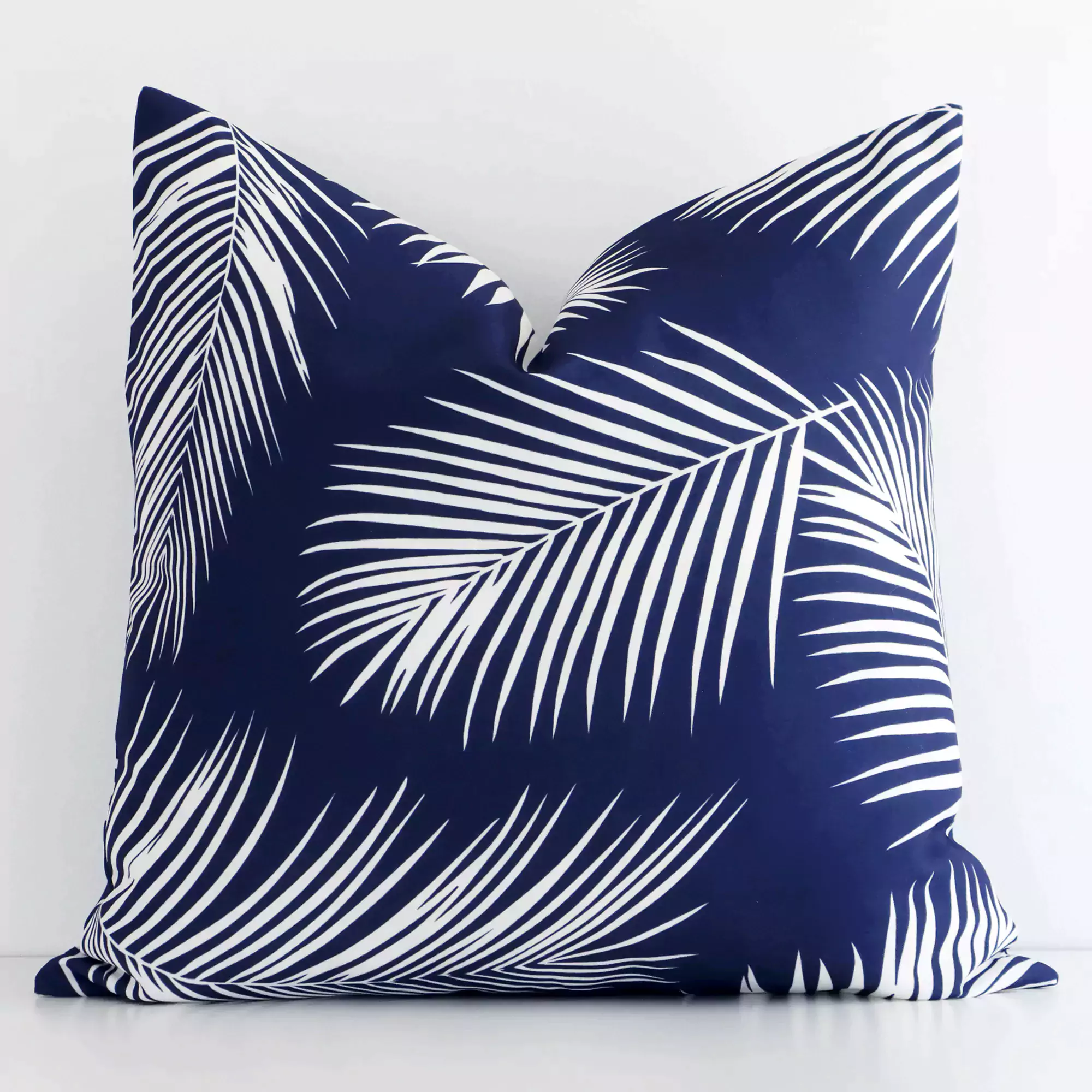 When dining alfresco, allow your cushion-scape to be the main attraction by using an interesting combination of patterns and colours. Featuring a tropical palm tree leaf pattern, this weatherproof navy outdoor cushion cover pairs well with similar hues and textures.
