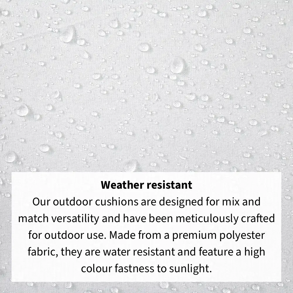The premium 250gsm fabric used in this outdoor cushion resists UV damage, with a high colour fastness rating of 400 hours. While you should never leave outdoor cushions in direct sunlight, this fabric provides added protection for lasting beauty.