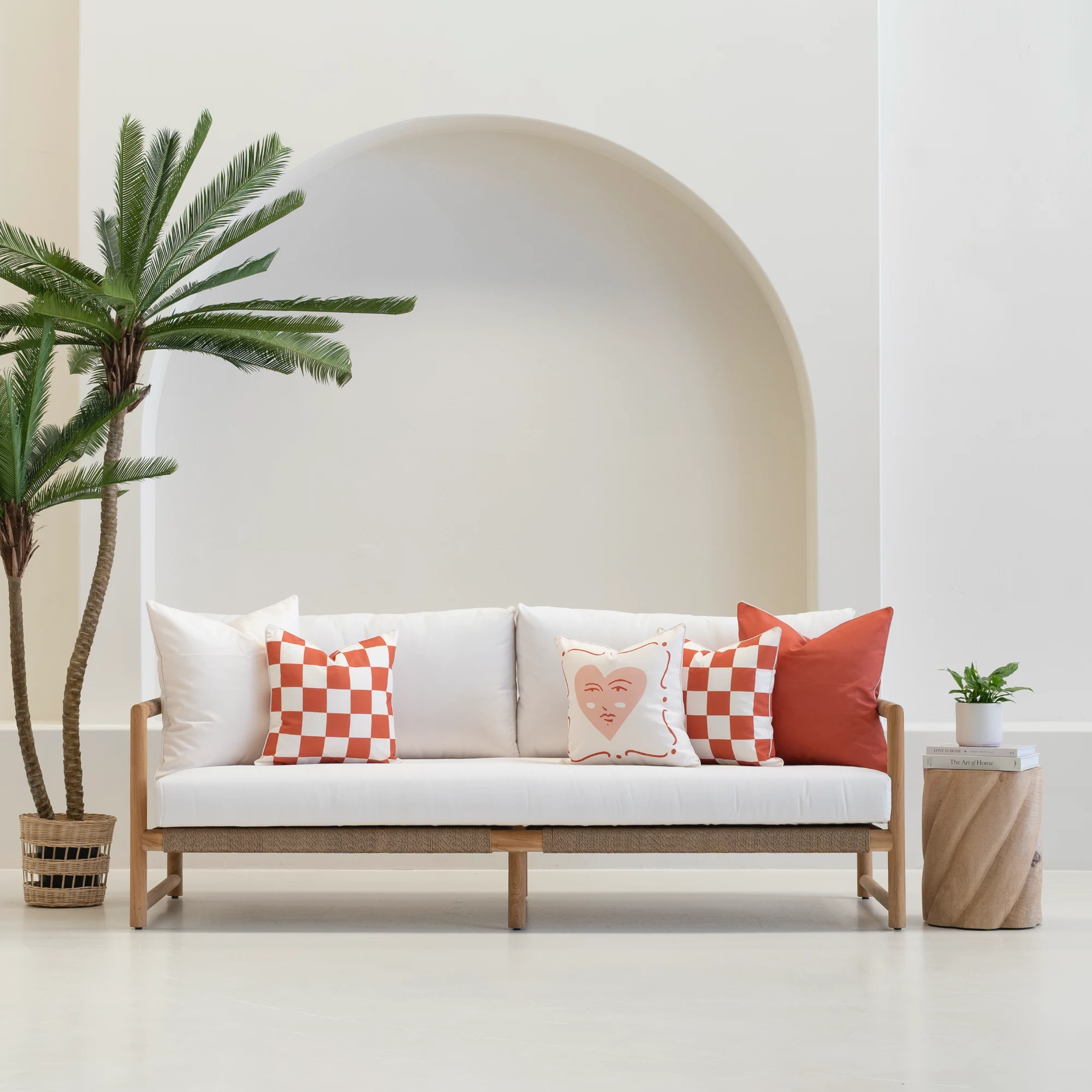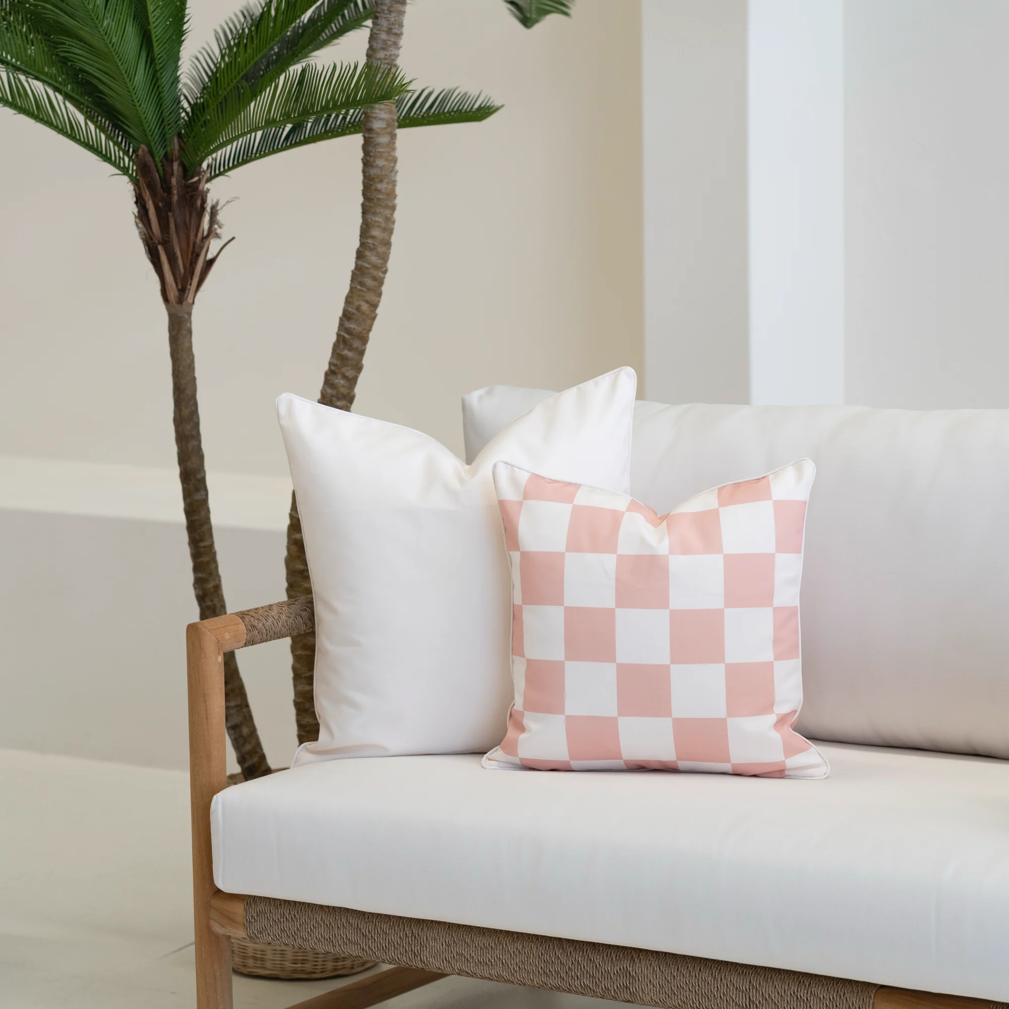 Designed as a grounding layer for outdoor seating, this large cream outdoor cushion adds softness without overpowering the space. Its neutral tone works effortlessly with patterned designs from the Tropica or Wildgrove collections. Finished with cream piping and made from UV- and water-resistant fabric to perform beautifully in Australian outdoor conditions.