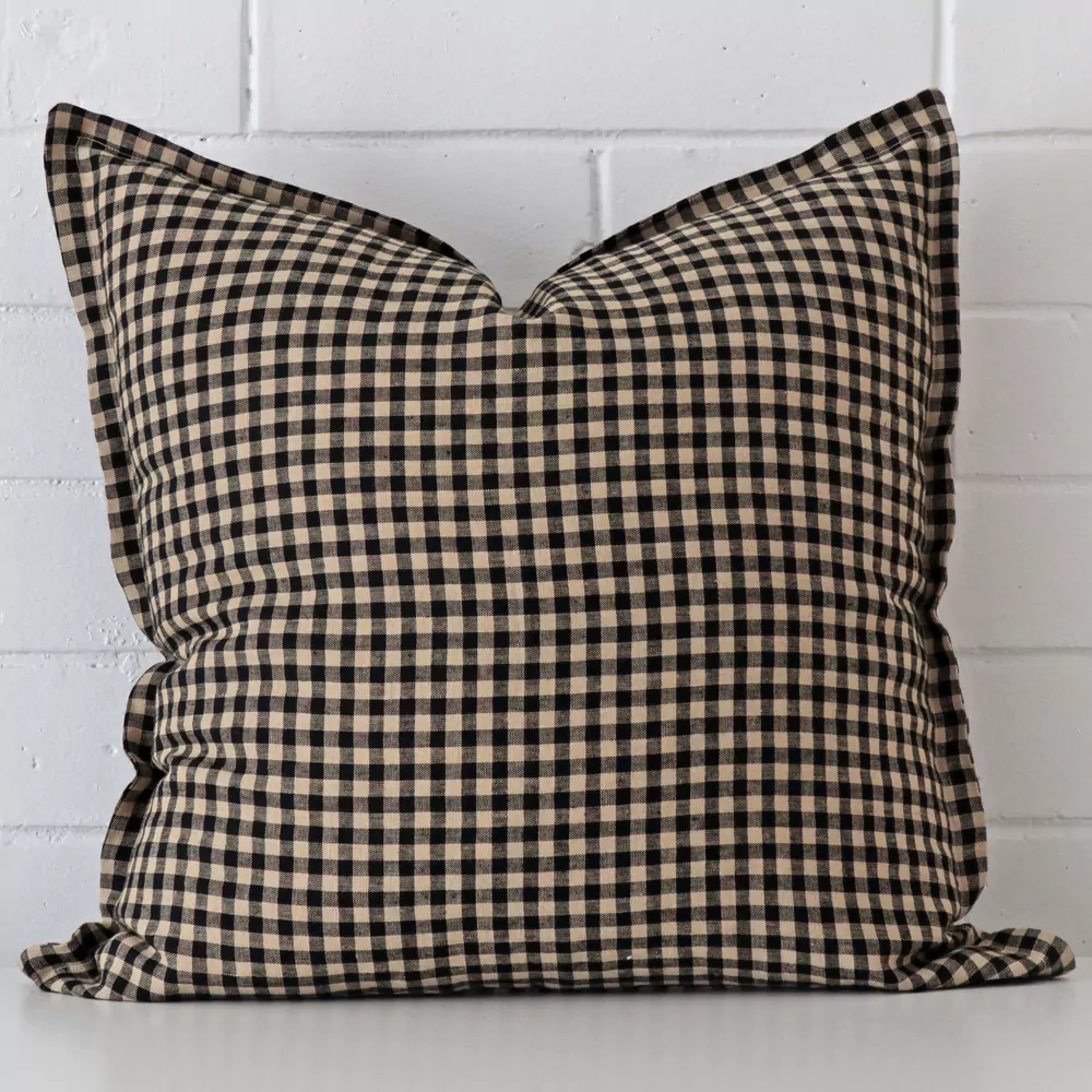 This simply beautiful cushion is adorned with a classic black and sand gingham pattern and exudes a timeless appeal, ??adding both depth and texture to your space.