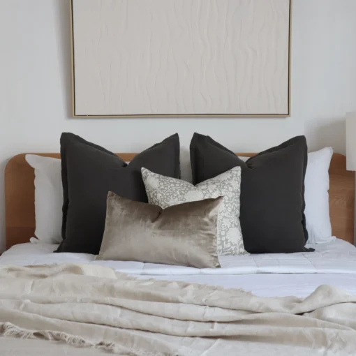 Wondering how to expertly combine cushions for a beautifully styled space? Look no further than our Gracie Linen Grey Floral Cushion Cover in rectangle. Pair this lovely cushion with a square linen block and a simple stripe design and you’ll achieve a professionally styled look that’s sure to impress.