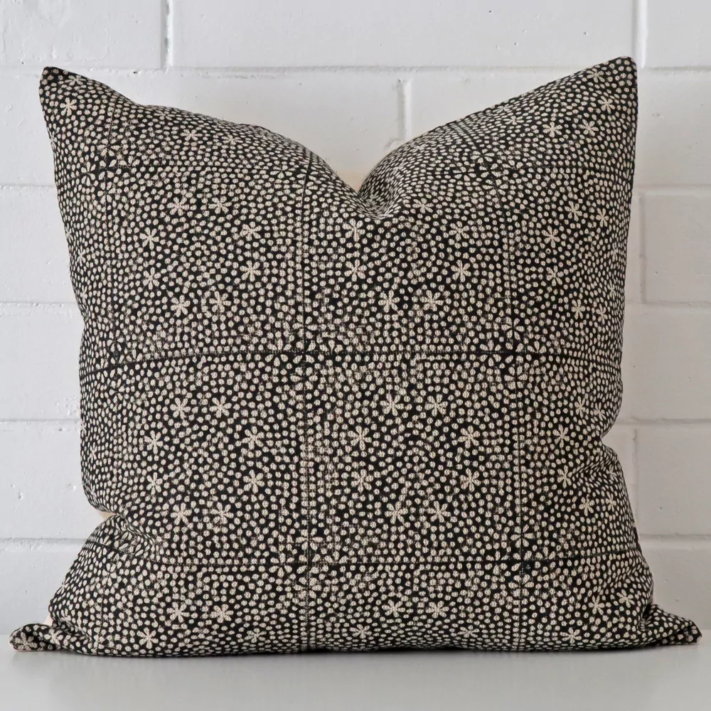 This simply stunning cushion is a standout in our collection. With its subtle dotted pattern set against a deep backdrop, it effortlessly brings a touch of elegance and charm to any living space.