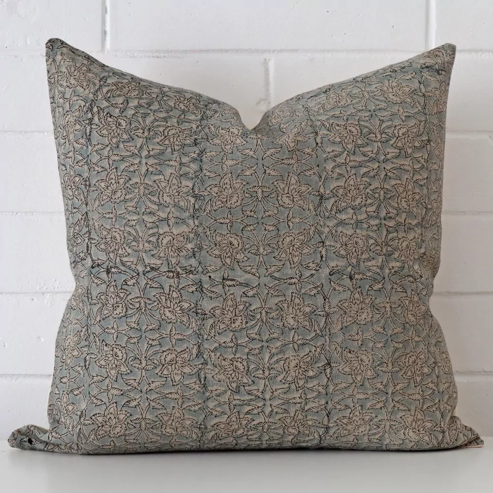 Adorned with a floral pattern in a subtle blue palette, this designer cushion combines the texture of dense linen with truly exquisite design.