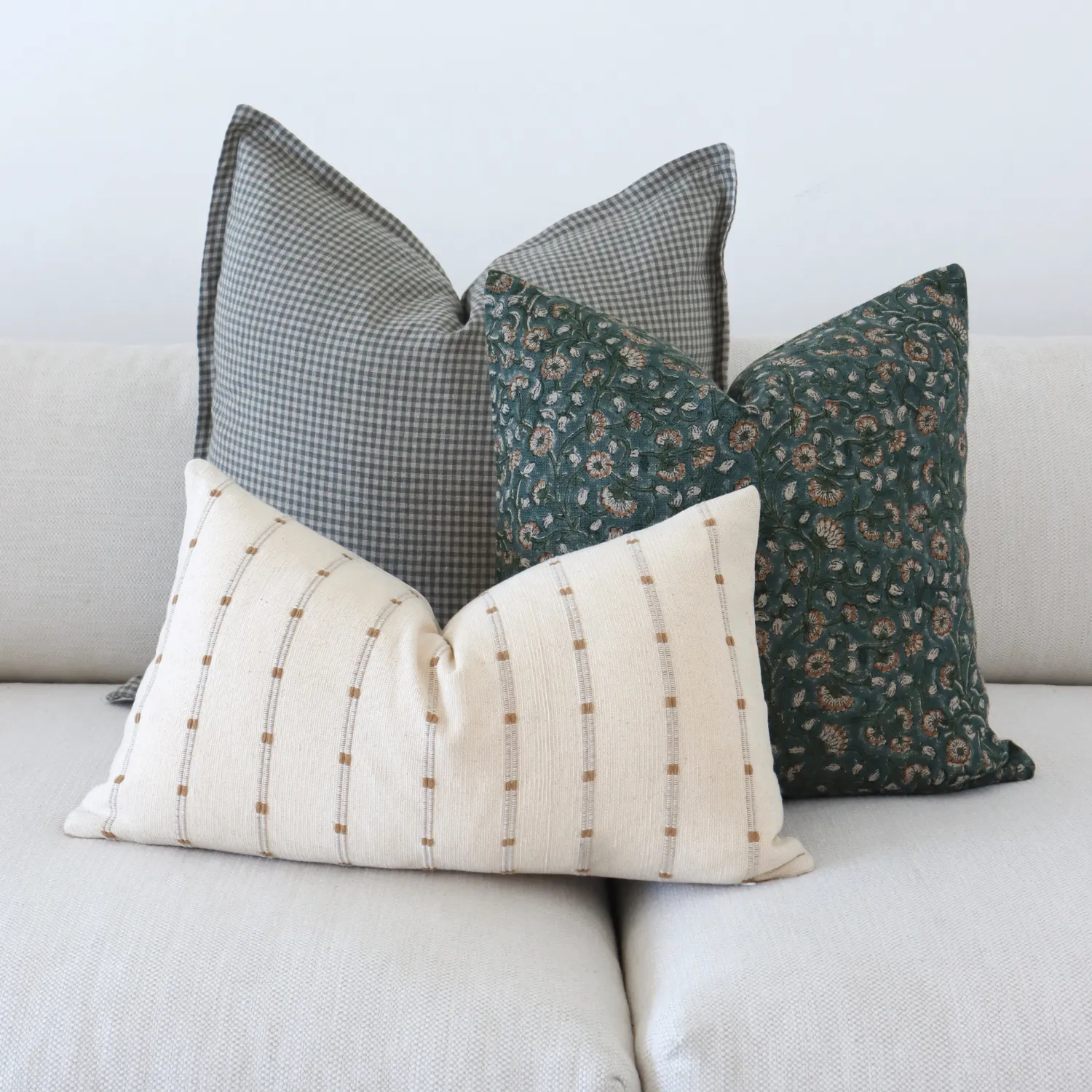 With a harmonious blend of green and natural checks, this gingham cushion offers a touch of rustic elegance to your space.