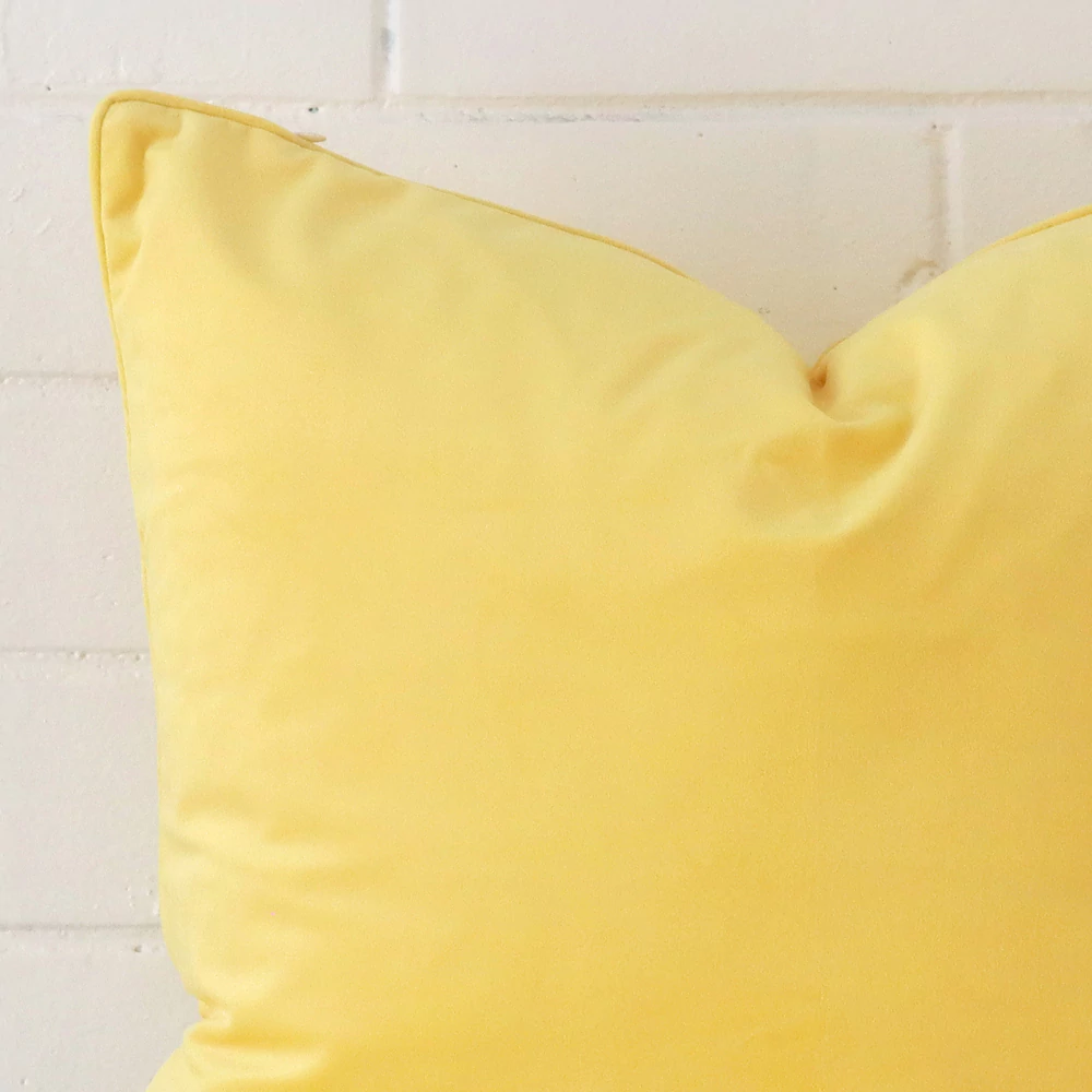 Beautifying your home with splashy hues can accentuate your living space into something far from basic. This brightly coloured lemon-yellow velvet cushion is sure to punctuate any interior setting and become the star of the show.