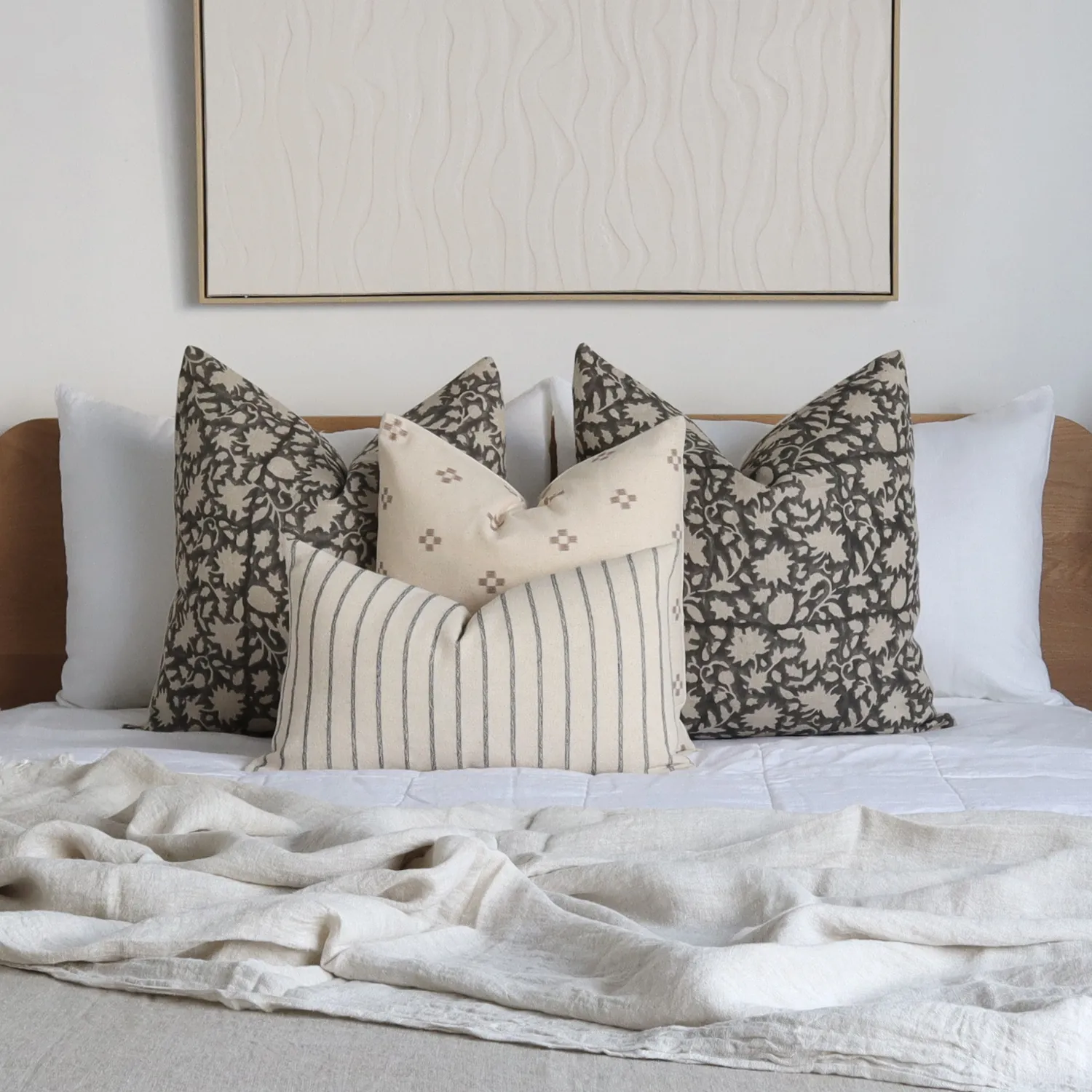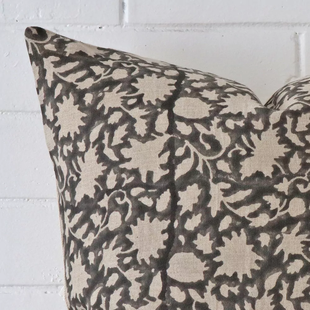 Hand block-printed by talented Indian craftsmen, the front panel highlights traditional craftsmanship on 100% linen fabric.