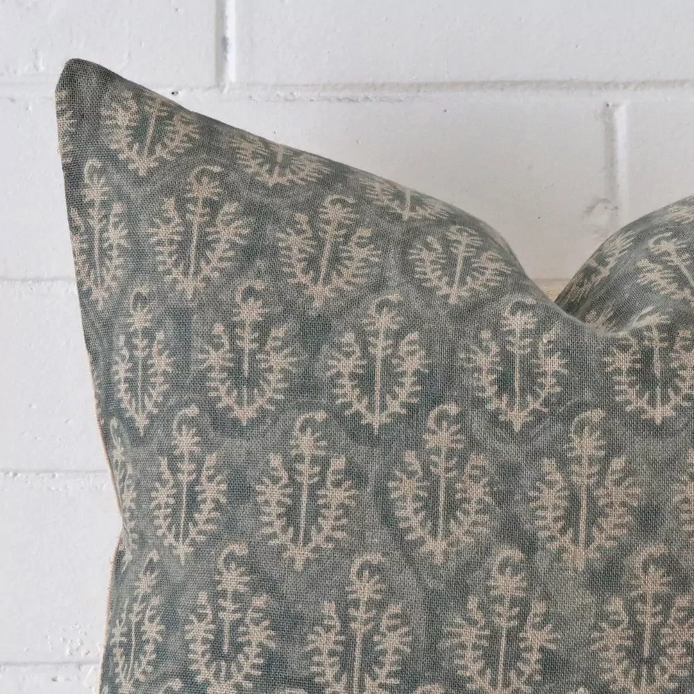 Crafted from 100% linen, the front panel is transformed by hand block printing in India using traditional craftsmanship.