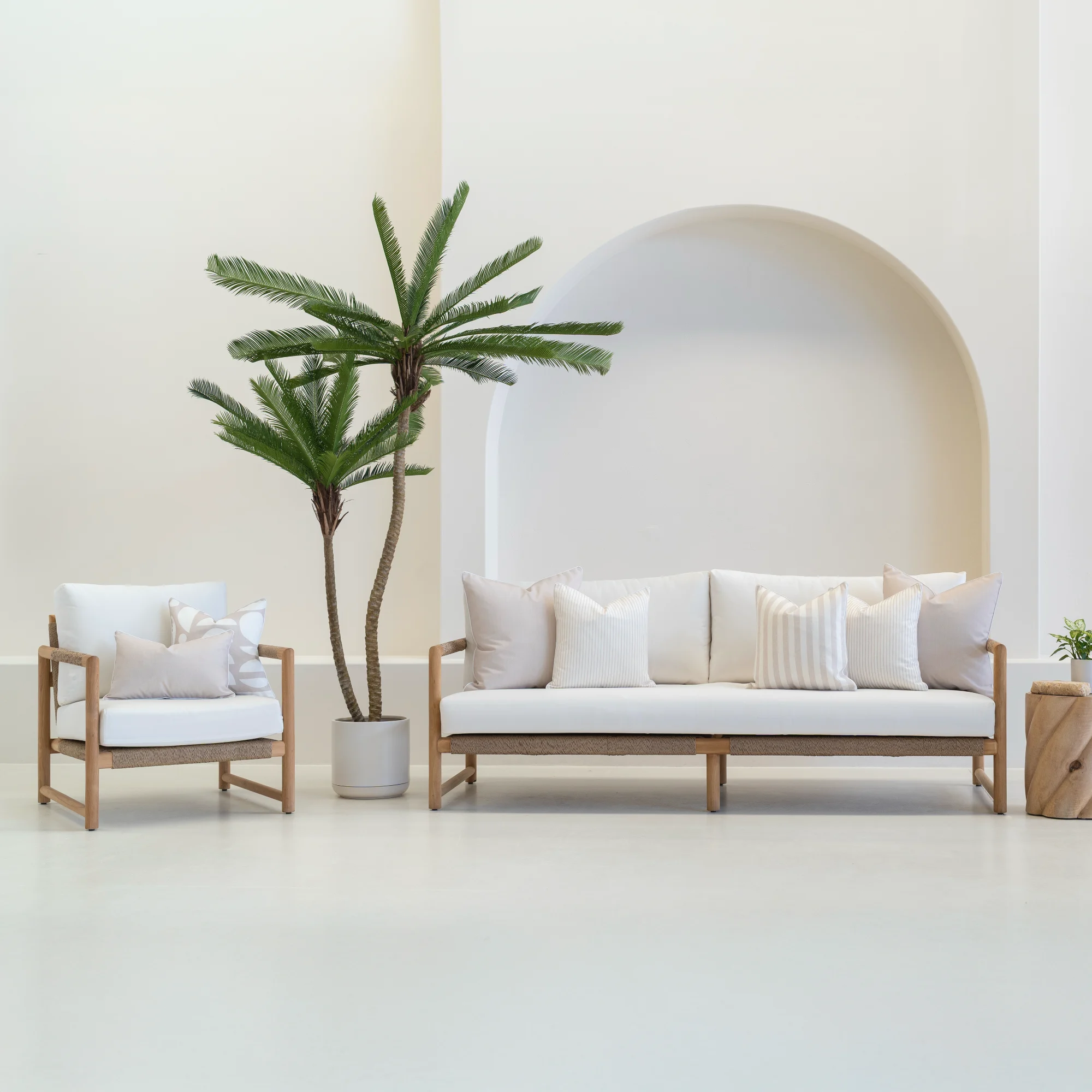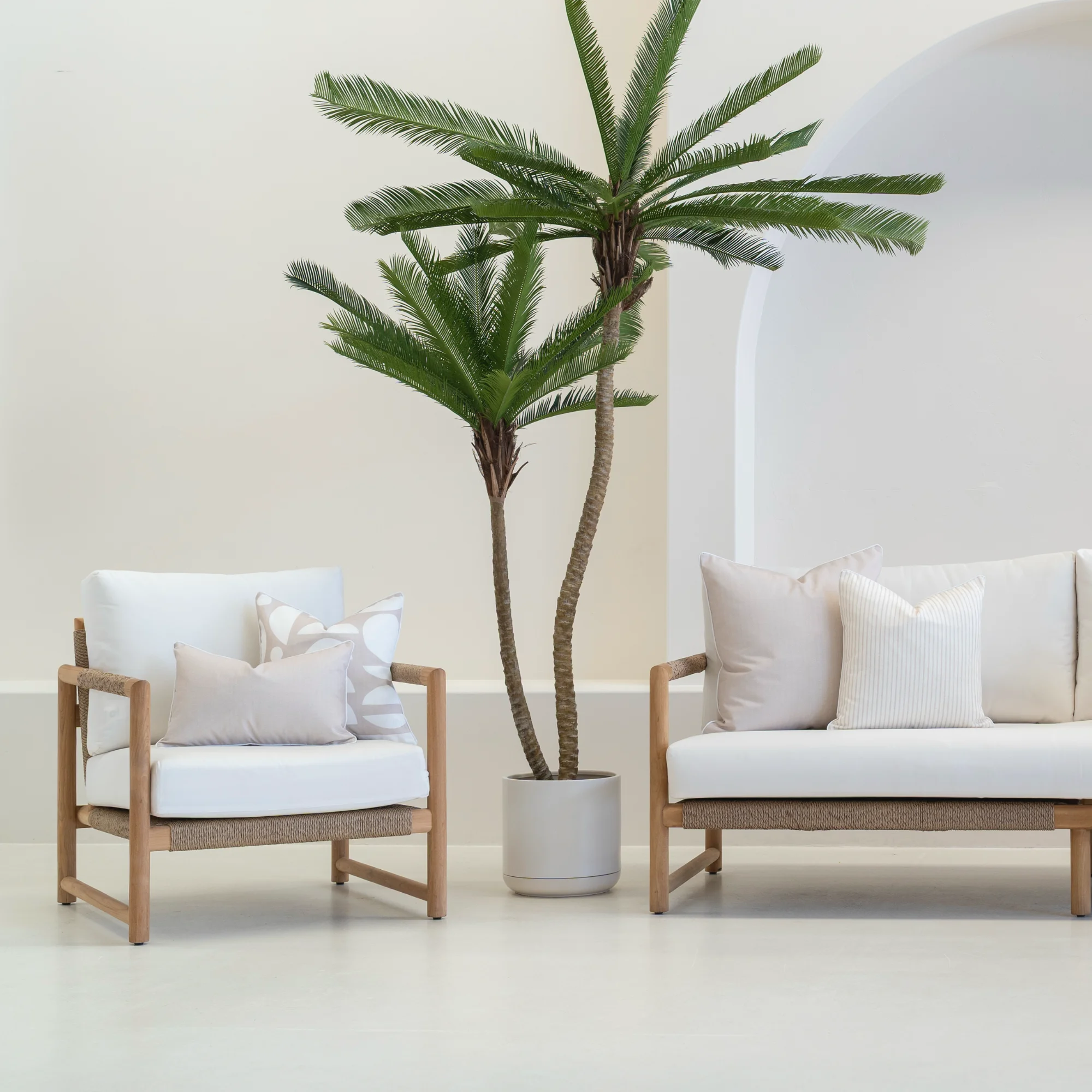 Introduce modern elegance to your outdoor setting with the Pacific Geometric Waterproof Sand Outdoor Cushion Cover. A soft sand base is overlaid with bold white geometrics, creating a striking contrast. Made from UV- and water-resistant fabric, it delivers both standout style and lasting durability.
