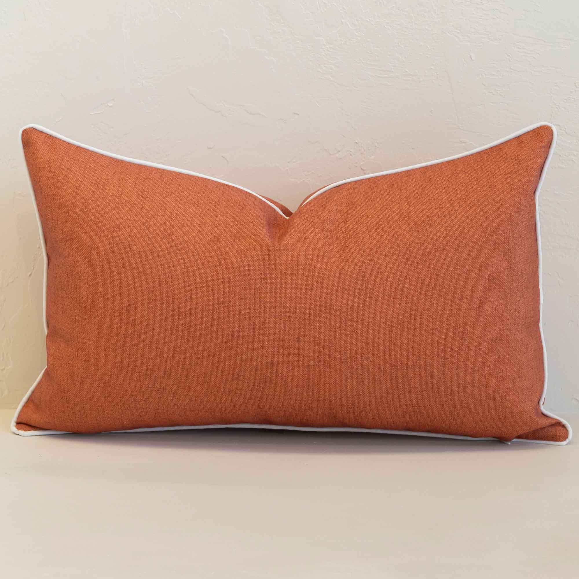 Warm and inviting, the Pacific Waterproof Rust Outdoor Cushion Cover adds a rich accent to any outdoor arrangement. Its earthy tone, crisp white piping, and UV- and water-resistant fabric create a versatile piece that blends durability with timeless, sunlit charm.