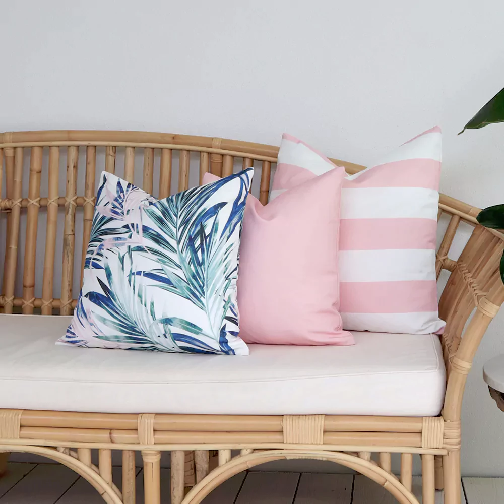 Relax in the gentle glow of our Pink Outdoor Cushion Set, where delicate pink shades blend with tropical greenery. Crafted to resist water and UV rays, these cushions envelop your outdoor area in soft comfort, offering lasting charm and a cosy retreat.