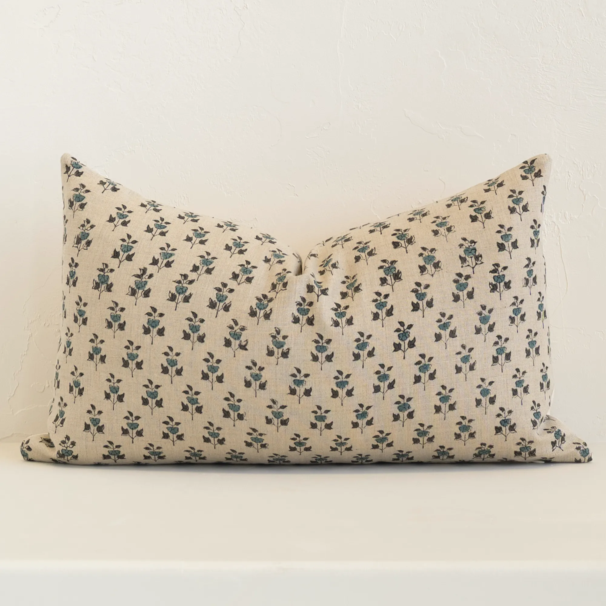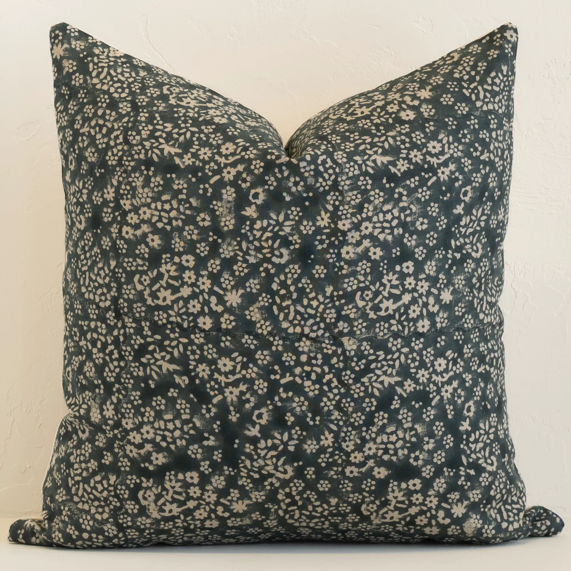 The floral cushions are hand block-printed in India, where artisans use traditional techniques to create detailed designs, each carrying the mark of the maker’s hand. Complementing them is a plain hemp and cotton blend cushion, offering natural texture and calming simplicity.