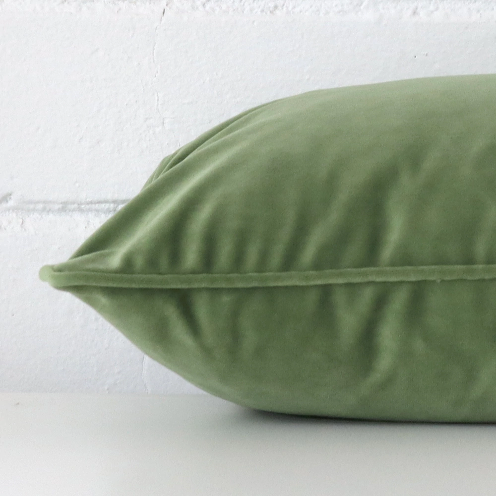 Soft shades of green can work as a subtle neutral or a standout accent. Soothing yet eye-catching in its own right, this sage velvet rectangular cushion cover is the perfect nature hue you’ve been craving for.