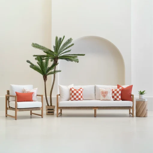 Soft yet expressive, the Tropica Heart Waterproof Outdoor Cushion Cover adds warmth and character to the Tropica collection. Used as a feature cushion, it brings a sense of personality while helping to tie together bolder patterns and solid colours. Finished in UV- and water-resistant fabric with 400-hour fade resistance, it’s made for outdoor spaces that feel curated but relaxed.