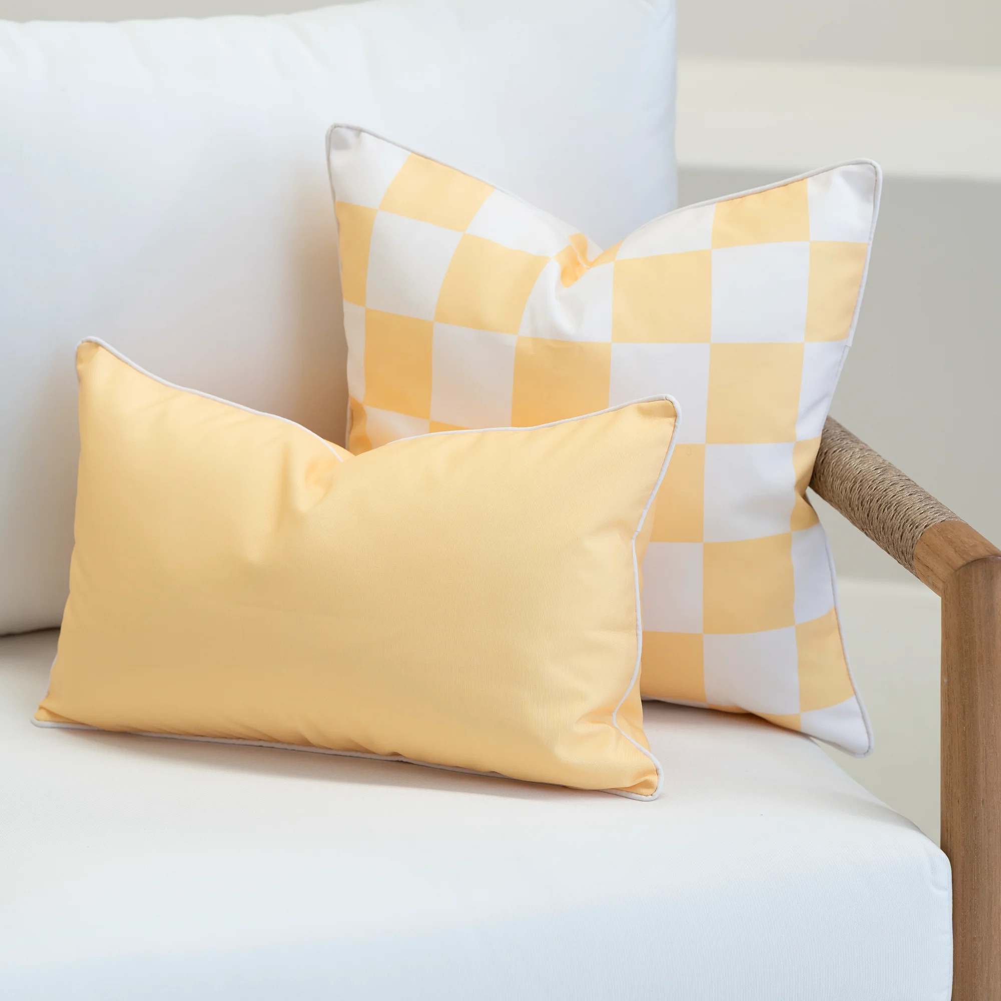 Bright and uplifting, the Tropica Lemon Yellow Waterproof Check Outdoor Cushion Cover adds instant energy to alfresco spaces. This yellow check cushion pairs beautifully with neutrals and coordinating Tropica designs for a layered look. Constructed from UV- and water-resistant fabric with 400-hour fade resistance, it’s well suited to outdoor living in Australia.