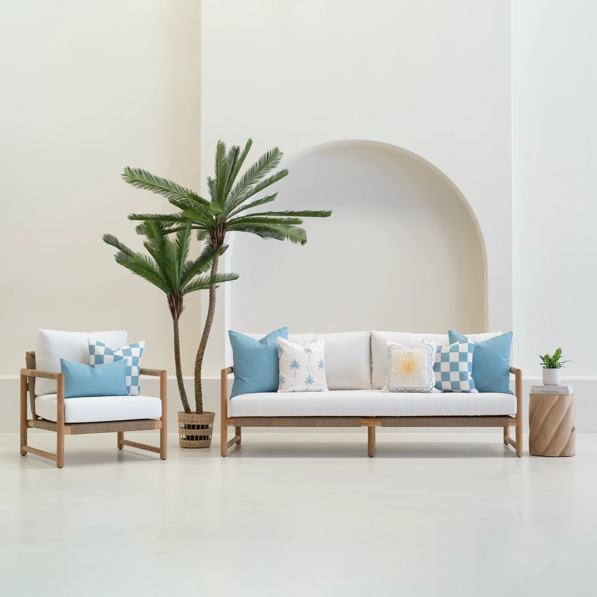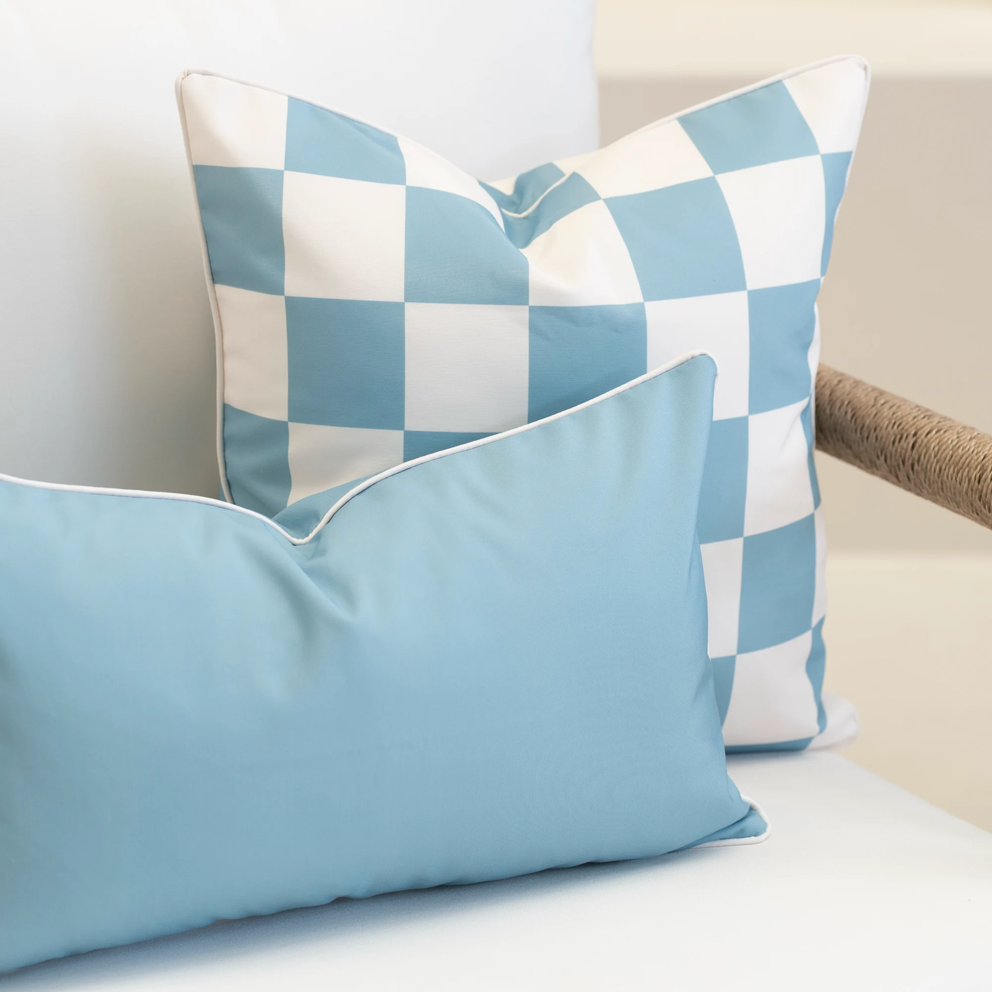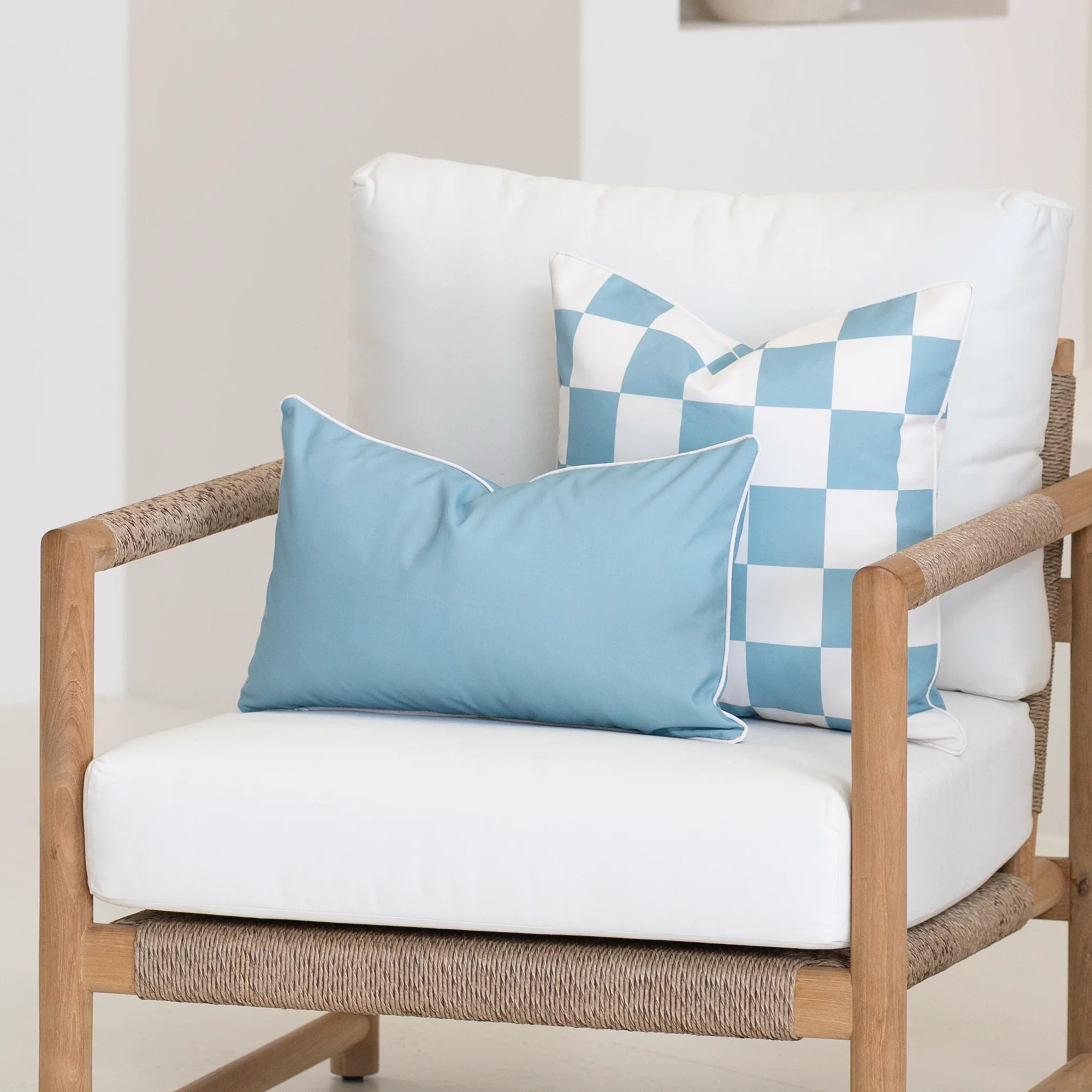 Cool aqua tones give the Tropica Waterproof Aqua Outdoor Cushion Cover a relaxed, seaside feel. This rectangular outdoor cushion brings balance to warmer shades and patterned pieces within the Tropica collection. Made from UV- and water-resistant fabric, it’s designed to stay vibrant and durable in Australian outdoor environments.