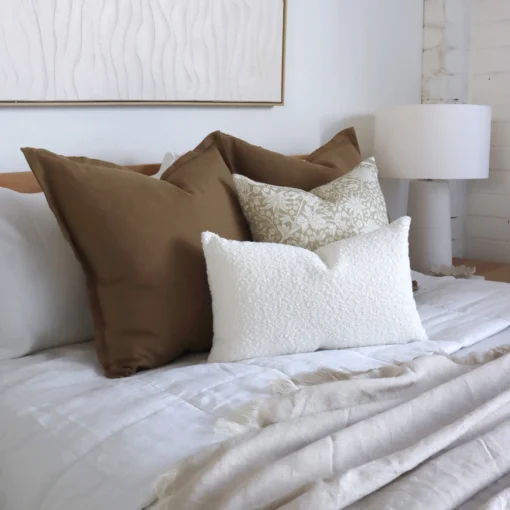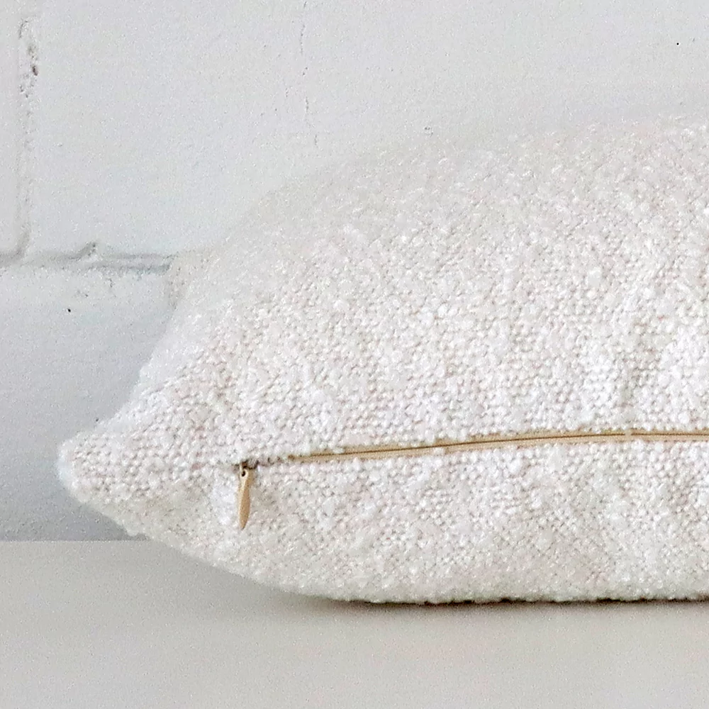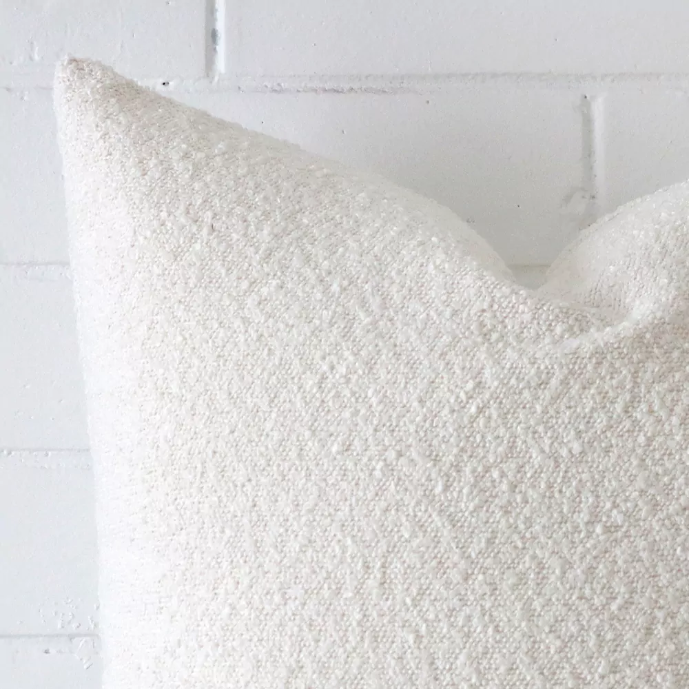 Looking to add warmth and charm to your space? Introducing our rectangular White Boucle Cushion Cover. Her soft, snowy white hue will brighten your space as well as introduce a beautiful texture to your interior.