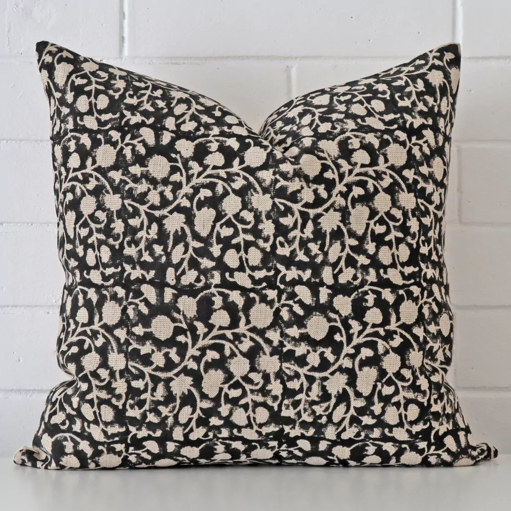 Featuring a floral design in a striking black and cream palette, this cushion exudes elegance. The rich texture coupled with its contrasting hues ensures it stands out as a distinguished piece in your collection.